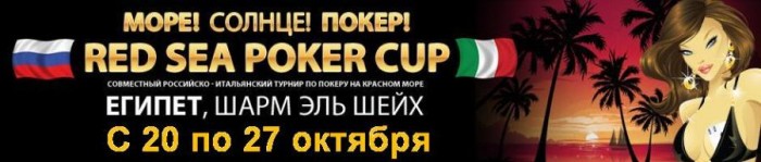 Компания Poker Club Management представляют очередной турнир Red Sea Poker Cup для любителей покера и отдыха в комфортных условиях «на морском берегу». Всех любителей чистых пляжей и красивого моря приглашаем с 20 по 27 октября в Шарм эль Шейх, Египет. Турнир пройдет в знаменитом «городе в городе» Domina Coral Bay Hotel, Resort, Spa & Casino (Казино Аладин).
