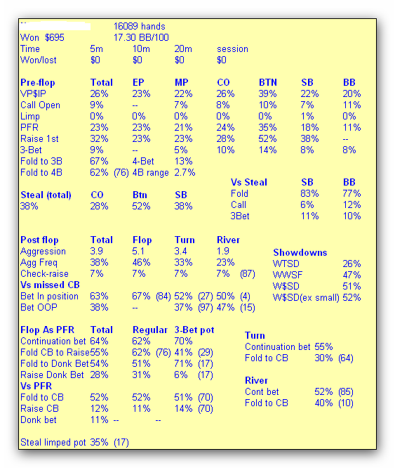 У оппа бет вс миссед 67% в 1/3 случаев он прочекает и мы недоберем по флопу. Если бы бет против пропущенного кбета на флопе был выше 75%, то вариант "чек-рейз флоп, бет терн и на стек" нравился бы мне больше. Кроме того примерно 1 раз из 3 на терне выйдет J-A, и выставление на таком терне будет очень сомнительным.