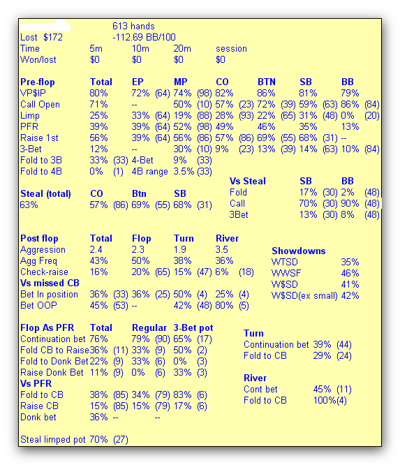 Против такого можно думаю кол терн кол ривер сыграть. Если посмотреть на его стат донка, то можно предположить что совпадение по 9х он будет играть через донк однако он играет чек кол флопа. Ну и в целом видно что опп часто проявляет агрессию и редко выигрывает на ШД...тонковато конечно и думаю в процессе катки я бы наверное выбросил руководствуясь правилом "выкинь оверпару на рейз терна"