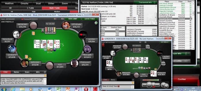 Все-таки использовал билет за 215 американских денег. Интересно было играть с "крутыми про". Переездов видел массу. Играют очень лузово, как мне показалось. Не дотянул до ITM. Переехал удачливый товарищ из Бразилии.