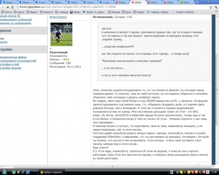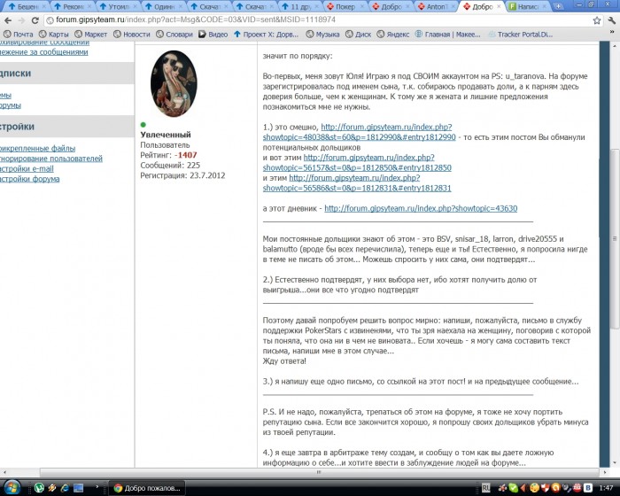 меня заминусовали...перед сном я решила зайти на Джипси, и Антон прислал мне личное сообщение, такого характера: