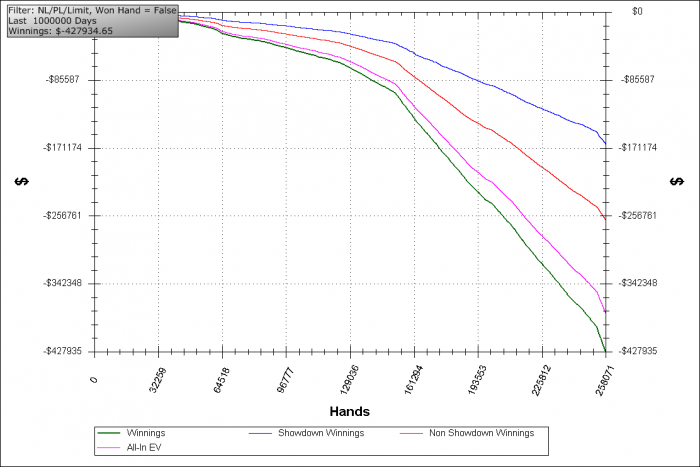 - Вижу, вижу, совсем все плохо у тебя, - ни капли не удивилась цыганка такой подмене и без спроса полезла в покерстов. - Линия ЕВ видишь какая слабенькая, а ты задвигаешься на флопе... и фолдэквити у тебя нет... и потоддсы очень плохие для кола...В общем, сглазил тебя кто-то.