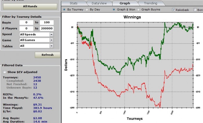 После этого у меня были потом небольшие вылазки, но всё это закончилось игрой не по банкроллу и нулём в кассе. Потом у меня снова была большая пауза в игре (не играл всё лето), и сейчас я решил создать дневник для улучшения своей игры, разбора интересных раздач в SNG и начать играть по банкроллу.