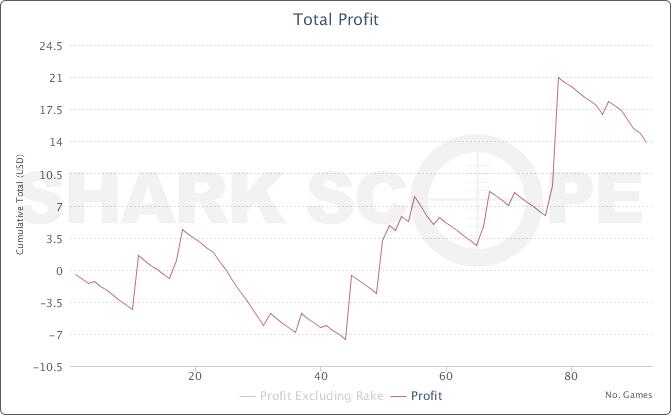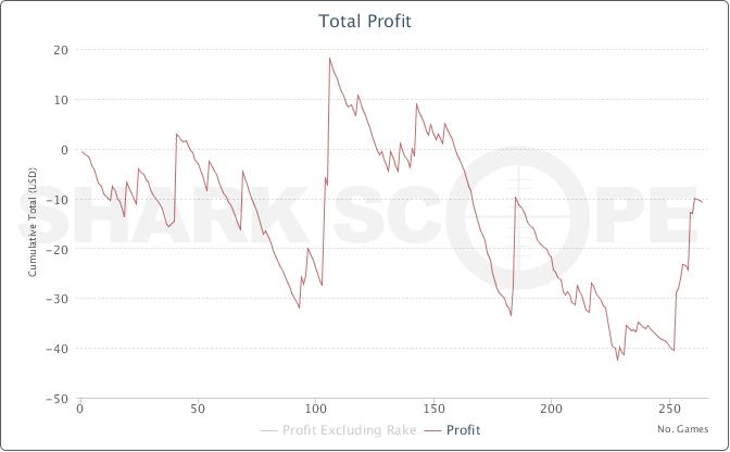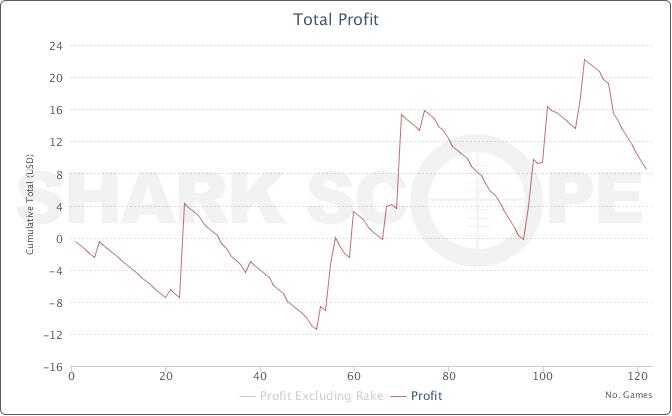 Но недели 3 назад я начал лудоманить, что мне не свойственно и играть некоторые турниры, Би в которые составлял по 3-4% от БР, а иногда и до 10%. Плюс мне сильно не перло, и, как итог:
