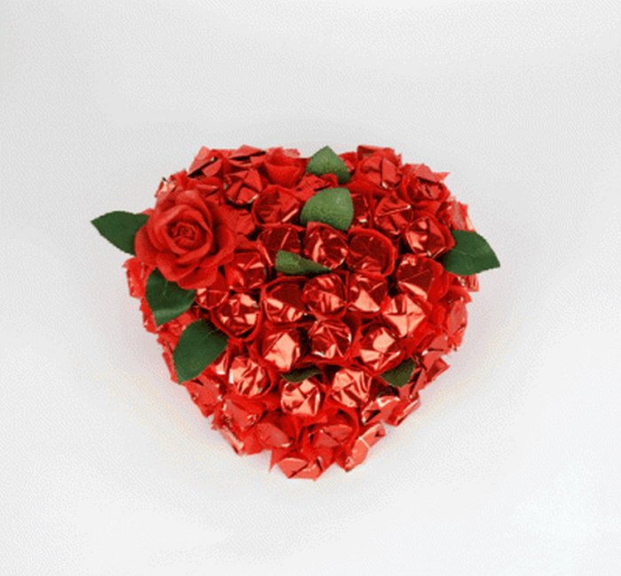 Букет из конфет и цветов в форме сердца,я уверен,растопит вашей любимой девушки.Согласитесь,это будет намного оригинальнее,чем просто цветы.