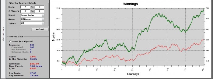 и снова кеш, только на этот раз нл10,но это для меня оказалось слишком скучно и монотонно, затем были доны, снг фулл ринг и 6мах за 3.45$ и 6.5$ где я достиг отметки в 600$ и после чего благополучно ушел на фтп отбивать бонус на первый депозит. Это был январь 2011 года после чего моя зеленая линия профита верно пошла, играл снг за $6.5, вверх и остановилась на отметки 1.8k в связи с известными событиями.