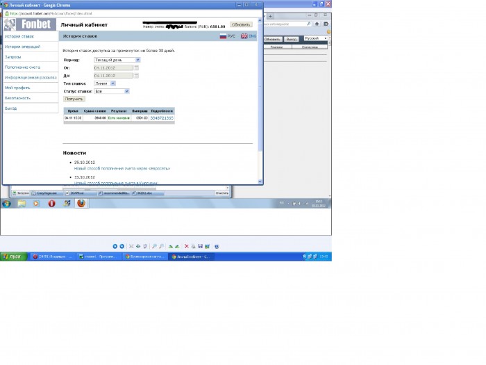 Здравствуйте любители спорта и ставок . На сайте я не так давно, в основном просто читаю интересные новости. Меня зовут Вячеслав и я уже который год пытаюсь раскрутиться с помощью ставок на спорт. Добавлю сюда скриншоты своих последних ставок с личного кабинета. Идет неплохо, в месяц средний доход 10-15 т.р. Кому-то это покажется мало, но для студента весьма хорошо. Зачастую мне не хватает дисциплины вот и задумал попробывать ставить с бекингом. Хотелось бы с заинтересованными пользователями собрать БР и вплоть до нового года делать ставки. Ставлю планирую по 5-10% от банка, а не как сейчас Н-ными суммами. Ставлю в основном не на исход событий, а на ЖК, удаления, или тоталы. Никогда ничего подобного не делал, так что если что научите. Просьба написать заинтересованным в теме:-) жду ответов, комментов, советов