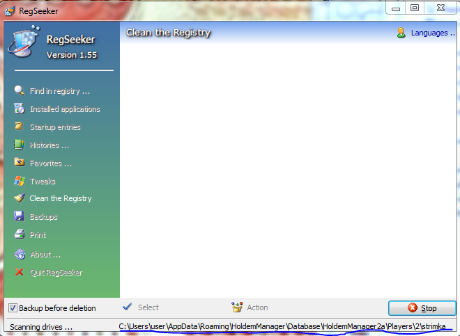 Здравствуйте. Чтобы освободить место на диске С скачал regseeker. Он начал сканировать и я обеспокоен тем, чтобы он не удалил мою базу данных. То, что он находит - это руки из базы или что-то другое?