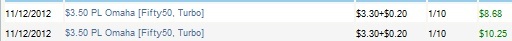 Исходя из этого Ф50 является самой дорогой в плане ошибок игрой. Ошибаться тут нельзя. Ошибся и вылетел из турнира = сыграл ИТМ 6 из 10, когда должен был сыграть 7 из 10. Если играешь два лимита, то 10 турниров = приблизительно 2 - 3 часа.