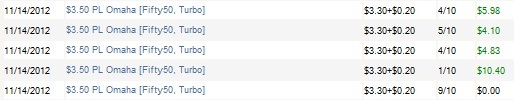 Больше всего по душе пришлась Омаха Хай, в неё же и были немного значимые результаты. Т.к. в кэш и в зум/раш недолго закатать все, что есть на счете (по своему опыту), то буду играть СНГ(6мах, фифти50) и МТТ(преимущественно 6мах) по банкроллу, первое время агро, в дальнейшем поглубже.