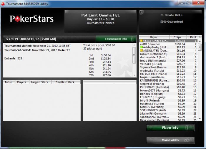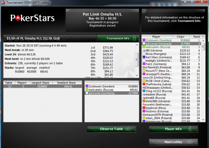 PokerStars Hold'em Tournament, 400/800 Blinds (8 handed) - PokerStars Converter Tool from