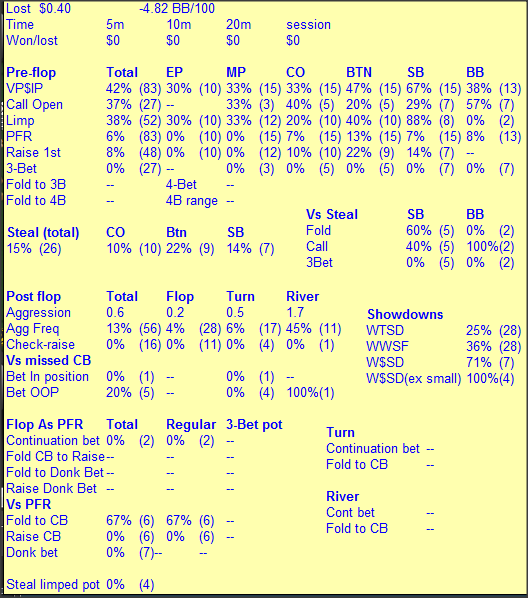 BB checks, Hero bets $0.40, BB calls $0.40