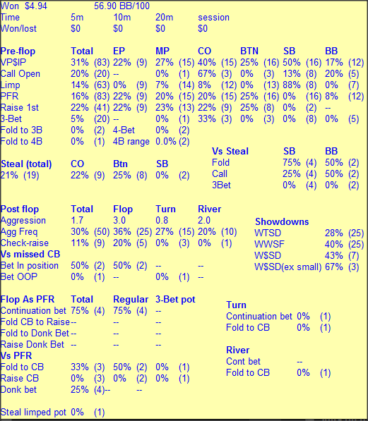 таки образом имеем, что если он кольнет ривер по девятке, то у нас 52%, если не кольнет, то 36%, плюс фолдеквити(19 комб из 45 того с чем он продолжил на терне упадет на твой пуш ривера). Так что ставим и ривер. Я думаю, что мы потеряем велью, если не поставим ривер