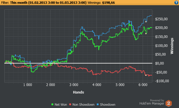 AngryGecco @ 24.1.2013 Перед выходными таймаут. Сыграл за 4 дня 20к рук в слабый плюс. Явно где-то я недобираю/отдаю, потому следующие 24 часа займусь теорией. На очереди: