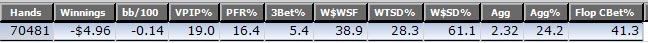 А у меня вот так Раздача номер 6 Уровень мышления один раз не выкину посмотрю че у них там опп 23\13\3 Coll 3bet 75% Agg 28\26\23