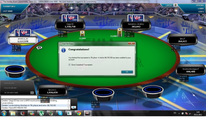 За неделю особо новостей не было, т.к. почти не катал. В четверг отлично погулял на корпоративе... так, что пятница была явно не рабочая, не говоря уж о покере. Субботняя сессия прошла в -150... воскресная началась так же, но завершилась вот так: