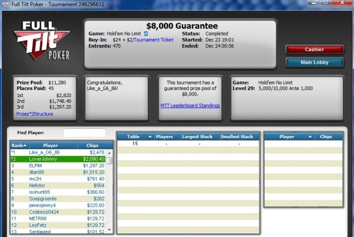 Всем привет! Меня зовут Алексей, мне 23 года. С покером познакомился около 3х лет назад: начинал с дешевых турниров за 200р в оффлайн клубах, там же и освоил КЕШ 1-2, после запрета покера - активно стал мультитейблить одностоловые турниры за 1$-3$-5$-10$, перешел на кеш nl10, nl25, nl50, опять вернулся на гриндинг одностоловых 6max, много играл в HU, периодически поигрывал MTT... В общем - перепробовал все что можно перепробовать, во что можно задрачиваться в 10-16 столов... Дождался открытия FTP, где у меня зависла сумма в 600$ и решил вплотную заняться только MTT, и изредка разбавляю многостоловыми СНГешками, когда уж очень скучно или нет времени... ах, да, по поводу времени - его и впрямь у меня не особо много, т.к. 5 дней в неделю я на работе, поэтому играю обычно по выходным, но иногда делаю исключения - убиваю вечерок, в будний день, если не провожу время с девушкой или не иду в зал. Кстати, МТТ я выбрал, как бы это парадоксально не звучало, все из-за того же времени - благо, работа у меня неплохая, поэтому тратить время на задротство мне уже не хочется... Тем не менее, я рассчитываю, что дневник будет интересным ;) Собираюсь играть турниры за 26$, иногда за 11$, когда хочу забить время, т.к. привык играть много столов - расписание на FTP, откровенно говоря, оставляет желать лучшего. Иногда позволю себе играть за 55$ или за 75$. Зачем нужен дневник? Да я просто люблю писать и всегда рад, если это еще кто-то будет читать, а еще и комментить ~&-)