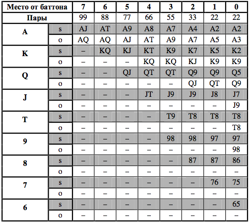 Хороший чарт, сам им пользуюсь. Понятно что бывают ситуации когда надо тайтовее или лузовее играть от предлагаемых стартеров. По нему также частенько ориентируюсь с чем 3-бетить.