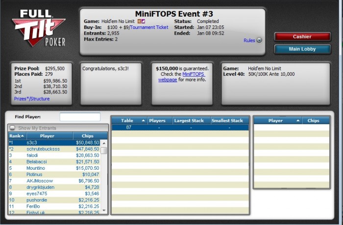 SB m111oto (4,210) 53bb BB CRYWOLF (4,590) 57bb Blinds: 40/80
