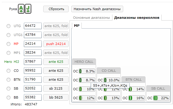 MP1: 24,214 (4.8 bb)MP2: 38,234 (7.6 bb)