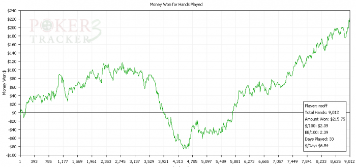 Дела идут хорошо, оказывается лимит 0.5-1 на старзах бьется. Даун, с которого начиналась эта ветка - оказался обычным даунстриком (хочется верить, да). Статы нормализуются. Играю очень мало рук, так как в основном по 2-3 стола, что очень хорошо сказывается на винрейте и одновременном анализе игры, но плохо сказывается на дистанции.