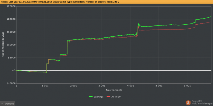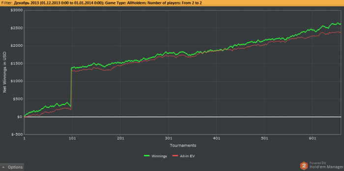 это график 13года толь хапы имтт где я играл финалку,были еще заносы небольшие на унибете и не учтены тут заносы мтт где небыл в х-апе,. к ноябрю все повыводил и в середине ноября мтт надоело , я решил снова покатать хапы.по совету друга заблокировал гипперы ,так как постоянно лез на хай лимиты когда тилтовал по нарастающей 15-15-15-60-100-200-500 вгипперах трудно столько проигратьигр в ряд но бывало ,заблокировал тк это все же на баловство похоже...положил 100 баков в середине ноября,сел на 15ки,они меня встретили -6 кушей вряд короче говоря осталося 10 баксовна счету, начал играть 3.5лимит ,быстро сделал 40 гдето,пошел на 7ки там набил 700+50 упал бон итого с банкроллом на счету 750 отдохнул посл пару дней ноября я 1 декабря полез на 15ки.онивстретили меня дружелюбно +10вряд... ниже графики ноября 7ки и декабря 15ки