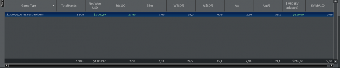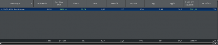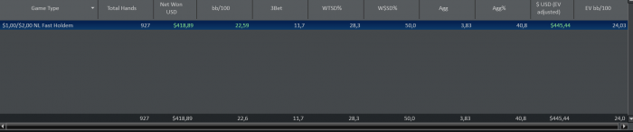 Сразу после того как вышел в небольшой плюс закрыл столы . Очень важно контролировать не только свою техническую сторону игры но и динамику сессии в целом , если продолжить играть после такого количества рук и уйти в минус , то можно легко впасть в манки тильт и проигрывать еще очень долго .