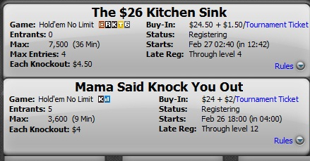 Если раньше садясь в час ночи по мск я мог загрузить много туриков хороших и не очень, то теперь как то совсем запускать нечего, зато можно сделать 5(!) входов в мтт за 5 баксов и гарантией 2500. Вобщем лично у меня это нововведение совсем не вызывает оптимизма.