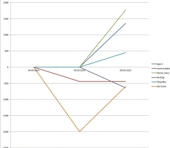 Egorrr @ 6.3.2013 Также хочу в публичной теме о пари с Daniel_Karo. Кэф 1 к 5, мои $300 против его $1500 на то, что я займу первое место по итогам челленджа.