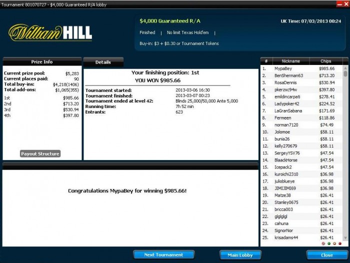 Отыгран первый день!! И есть доезд, небольшой но все равно приятно! жалко не удалось вырвать победу у фишей - на 4ой раздаче 3-хендид раздали QQ в АА))
