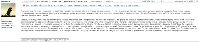 Извиняюсь за офтоп. Но нет. Доцент отсидел за тот мерзкий пост. Он был отключен от форума на две чтоли недели, модераторы посчитали именно такое наказание адекватным преступлению. Потом он вернулся и назвал тебя мудаком в рейтинге, за что был отключен окончательно. Сам пост мерзкий и провокационный, я с этим согласен, хотя тот строгий богословский факт, что фюрер был послан самим богом, вряд ли кому удастся оспорить. Про гнид Sharikoff немного расписал. Вся эта история неслабо так раздута глубоко идеологизированными пользователями. Я против идеологии, за разум.