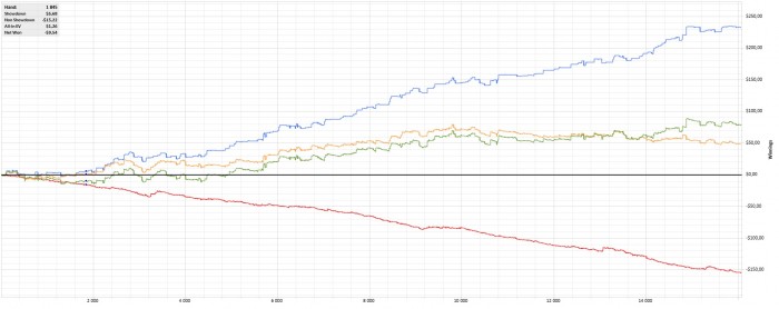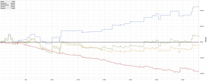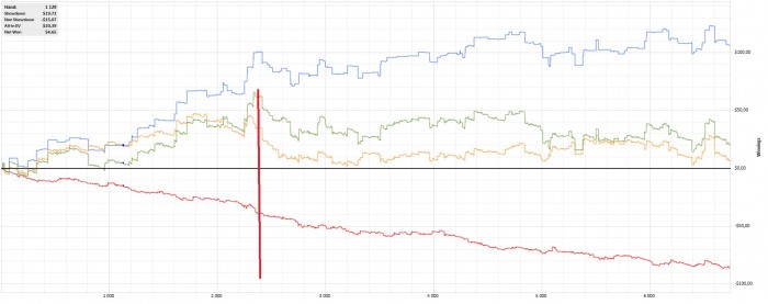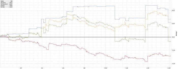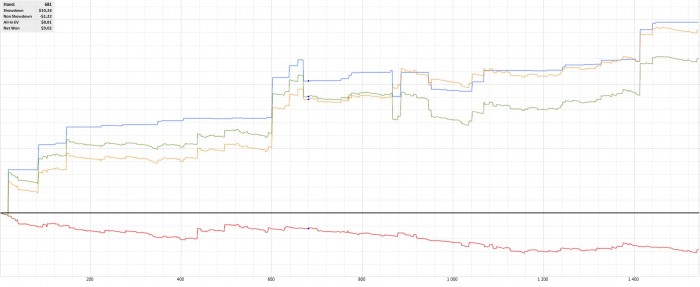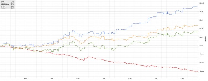 Дисперсия не дает скучать. Но я был бы совсем не против такого расклада - на нижнем лимите даун, на верхнем лимите ап! Игровыми результатами вполне доволен.