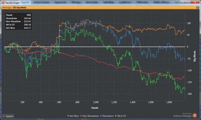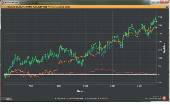 Нене, я понимаю, что набрать много рук с 10-12бб, сложно, но просто 2500, это вообще, блин, мне бывает за 2500 (40 минут кеша), рук ничего выше средних карманок не заходит.
