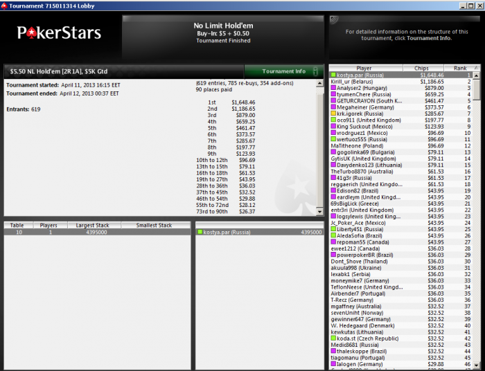 Игроку было переведено 500$. К 13.04 профит пакета составлял 2946$ (из них доля бекеров 2238.96$). В течении сегодняшнего дня tyumenchere закатал большую часть профита в непрофильную дисциплину, после требования выслать остатки бекерских денег, он сделал перевод на 500$.