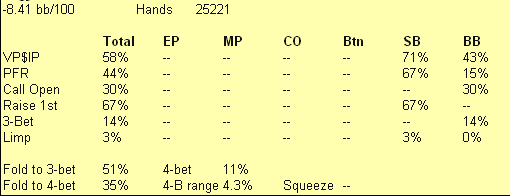 скажу сразу: сам пока что "околонулевой типок", но скажу точно: очень высокий конт бет, ты похоже ставишь почти во все флопы и во всех оппов, а на терне часто чекаешь и тебя либо легко чек рэйзами задавить либо флоатом без позиции. Поэтому без вскрытия такой большой проигрыш. можно с СБ полузовей открывать
