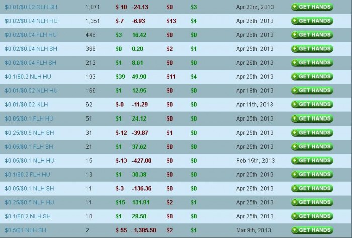 Сыграл в 0$, жесть просто, еще и бонус в 16 долларов залил:(( Проблема думаю с тем что я без программ играю, оппов непомечаю... Хотя думаю статы были бы для меня сейчас, самым важным плюсом. Мат ожидание урезаю этим себе(
