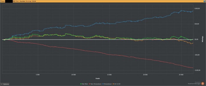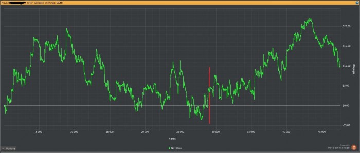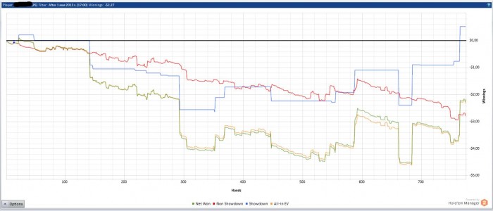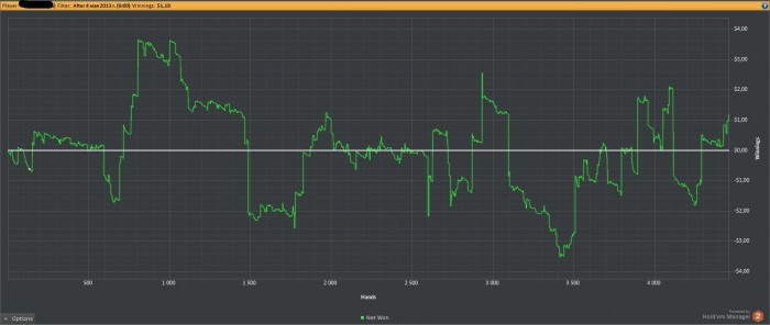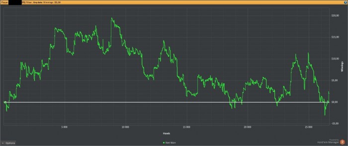 После пары слитых депозитов понял, что БРМ в МТТ это не шутки, так что решил набить нужную сумму в кэш-игре. Сделал очередной депозит на 888. Смущало ограничение на мультитейблинг до 6 столов. После небольшого дауна решил перевести средства на Старсы. Там вдоволь намультитейблился, причем возникло ощущение, что чем больше столов я загружаю, тем хуже становится игра, что странно, ибо что при 6 столах, что при 20 я думаю над действием 0,5 секунды в 95% случаев; хотя бывало заливал на 6 столах и выигрывал на 16. Я чувствую ошибки в своей игре, но не могу найти. Пробовал 2 стиля: очень нитовый (на старсах) и более творческий (на пасифике). Создаю дневник с целью выявить ошибки.