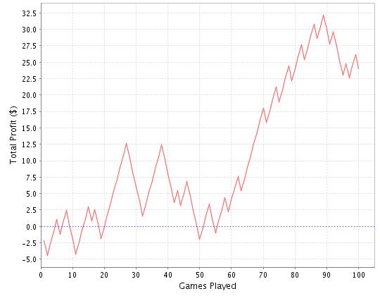 Итог 500 игр ROi 8% (10% считаю нормой) и 88$ при желаемых 100 - 110..((