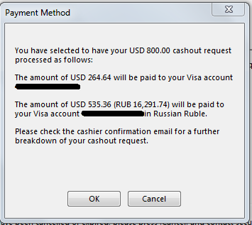 Почему происходит рапределение кэшаута на доллары и рубли? Боюсь, что это какой-то страшный процент.