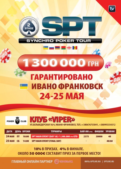 24-25 мая, в покерном клубе "Viper Club" пройдет главное событие SPT,