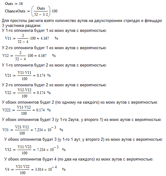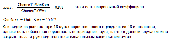 Когда мы обычно считаем ауты - мы принимаем, что все они остались в колоде. А разве это правильно? Ведь оппам тоже карты раздают, да и дилер запросто может "сжечь" твой аут.
