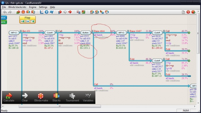ЕВ пуша по фишкам приблизительно раза в два выше чем ЕВ колла. но и диспа соответственно. (после колла, вариантов развития событий миллион, поэтому прикинул пару простейших сценариев)