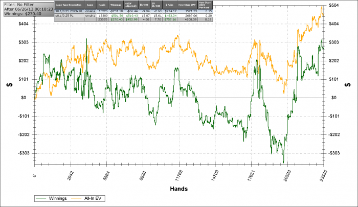 В апреле неделю покатал пл10, плюсанул еще немного и с банкролом 1.5к пошел на пл25. Встретили меня там нормально, фишей кучи. Но потом случился приличный стрик, да еще и вынужденный кешаут, которые почти уничтожили мой банкролл.