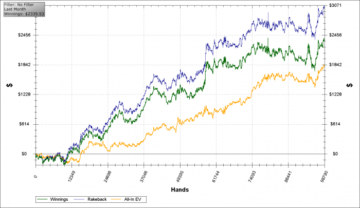 В апреле неделю покатал пл10, плюсанул еще немного и с банкролом 1.5к пошел на пл25. Встретили меня там нормально, фишей кучи. Но потом случился приличный стрик, да еще и вынужденный кешаут, которые почти уничтожили мой банкролл. Апрель прошел вот так: