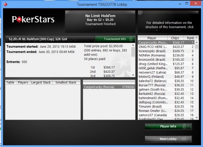 Rinie W says "see you later yo yeah", 3 folds, Ekaterina1988 raises to 2,460, umbroSS goes all-in 13,365, 3 folds, Ekaterina1988 calls 10,905
