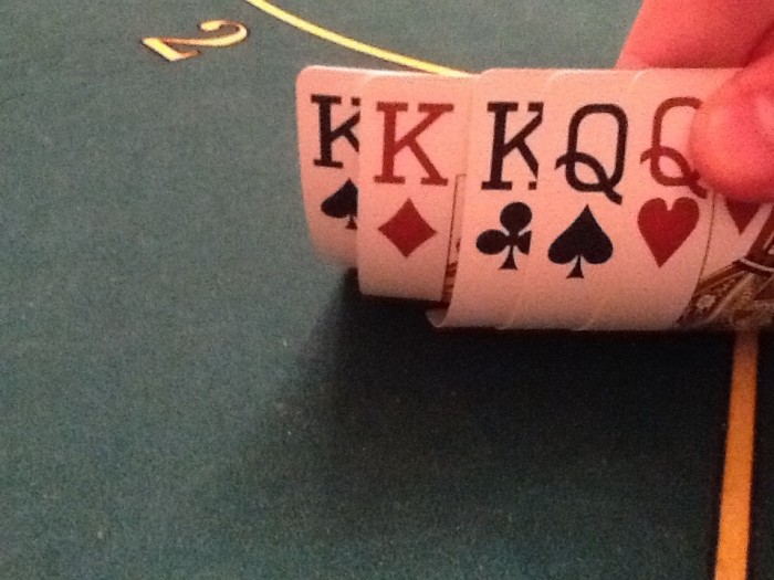 Дальше начинается раздача , сначала ставится так называемый бринг на младшую карту из вскрытых первых карт между игроками, можно сделать рез в пот. Когда ошел первый круг дилер начинает раздавать по второй карте с первого игрока после батона, круг торгов начинается теперь и далее со старшей руки , и мы получаем что у нас 5 кругов торговли.