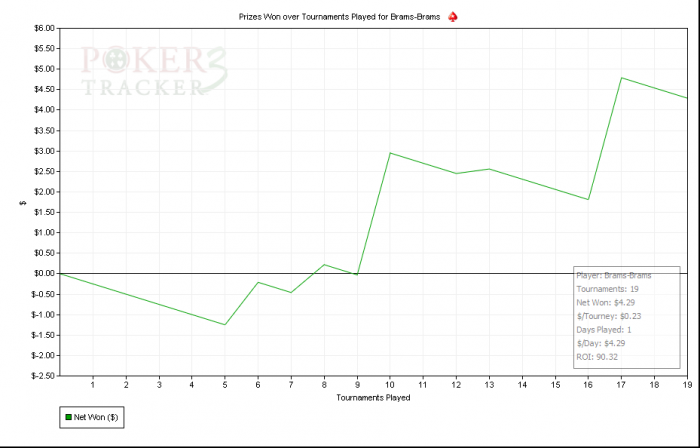 Это выше моих сил))) Они такие медленные, давно их не играл, идут чуть быстрее турниров по 1$, ввиду лузовости игроков, но всё же играть по полтора часа каждый турнир, пускай и по много столов, учитывая ожидания...жуть какая-то, сдаюсь. Я просто не могу воспринимать их всерьёз и играю слишком безответственно.