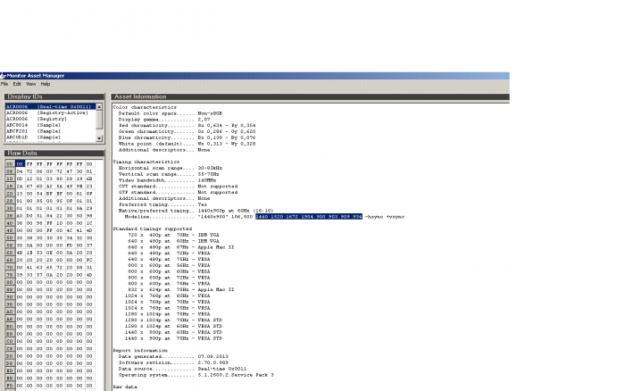2) Узнать данные по таймингам для интересующего нас монитора. Это можно сделать либо обратившись в поддержку производителя, либо на форумах, либо извлечь с помощью программы EnTech* MonInfo. Нам нужны такие параметры, как– координаты начала синхросигнала, координаты конца синхросигнала, конец затухания (на английском языке см. Скриншот).