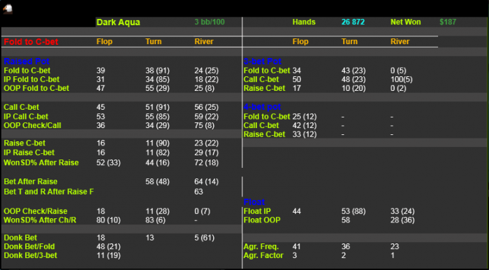 Не сказал бы... На 220 раздач приходит 13 карманных пар. Из них 3 пары (QQ-AA) он будет рейзить. Получается 4,5 пары за 100 раздач. Из них 2,25 приходят когда он ОР, 2,25 когда колер. Получается, вероятность сета, при колле ~2,25%, с которыми он и рейзит конбет. Также, иногда он будет трибетить с 88-JJ.