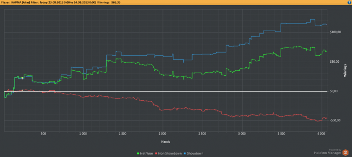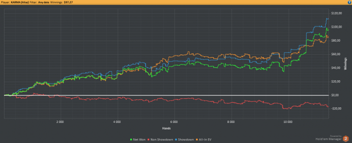 Блог нужен для самомотивации, а также отслеживания результатов и роста скила. В основном тут будут графики, немного раздач и мысли по ним. Со временем я смогу наблюдать как меняются мысли по поводу раздач.